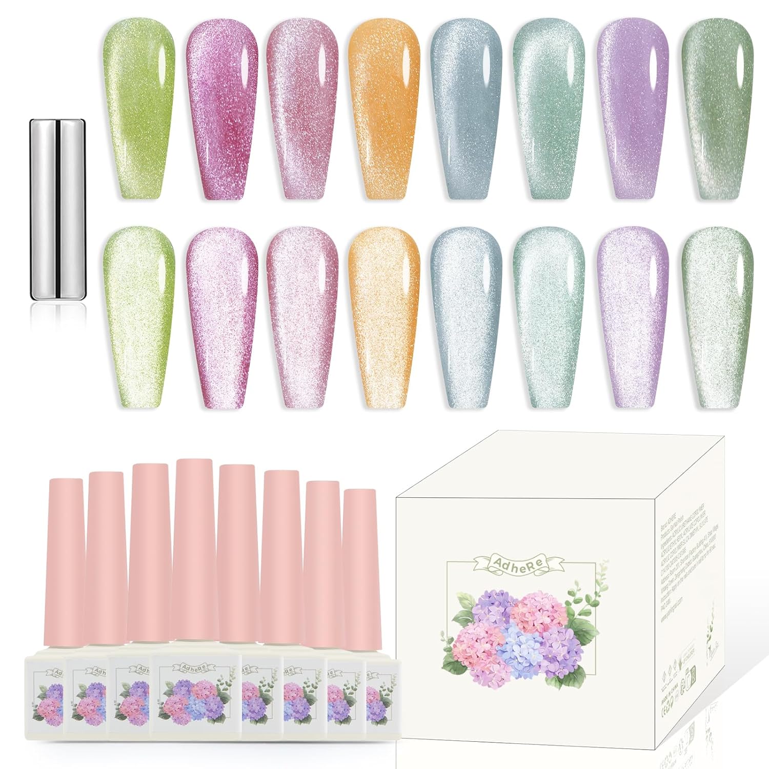 ADHERE Realm of Freedom Cat Eye Gel Polish Set with Magnetic Stick and Brush, Holographic Glitter UV/LED Cat Eye Gel Polish Nail Varnish for Nail Salon