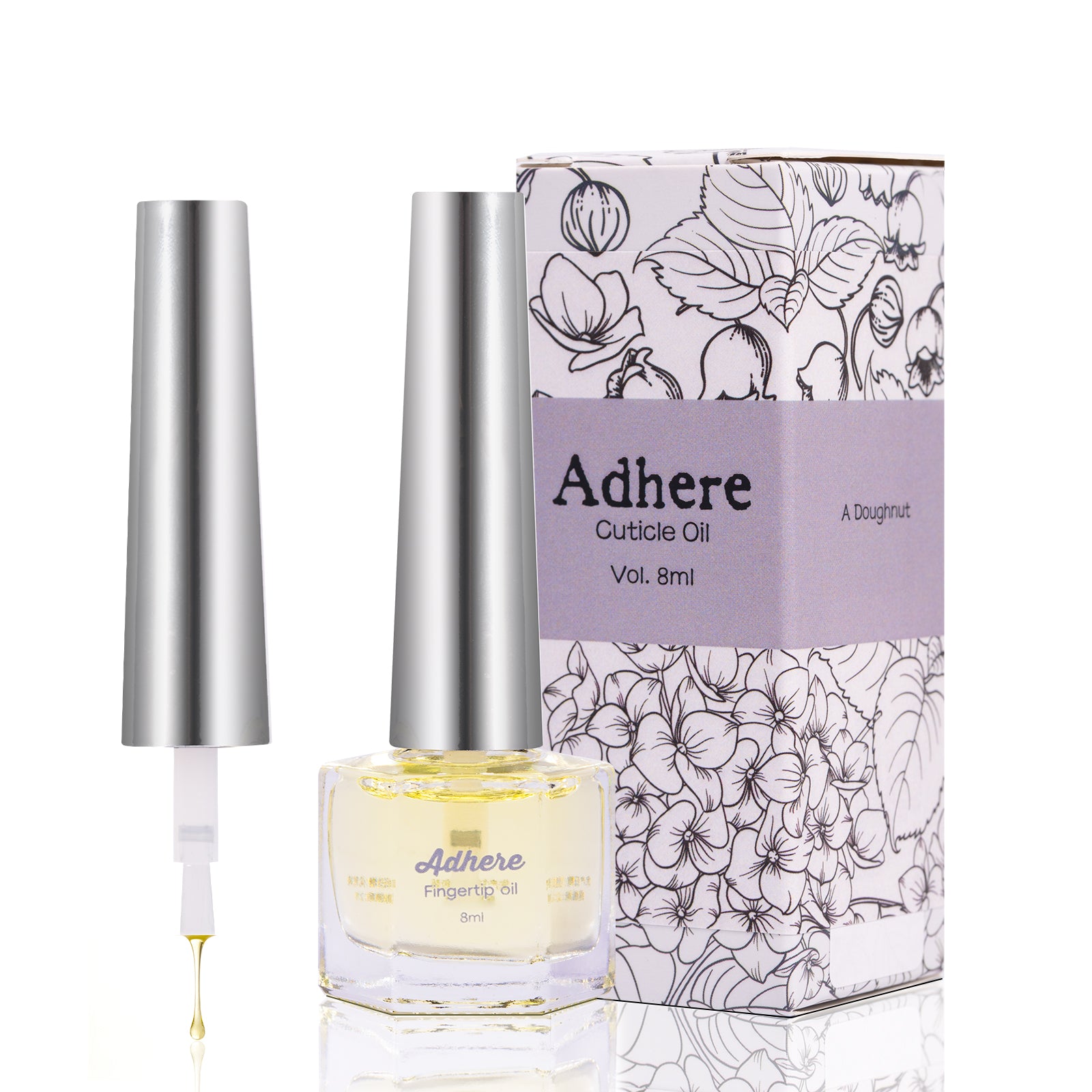 Adhiera aceite de cutícula profesional, 8 ml, aceite de jojoba con vitaminas, cepillo suave, para el cuidado de la nutrición y las uñas (floral)