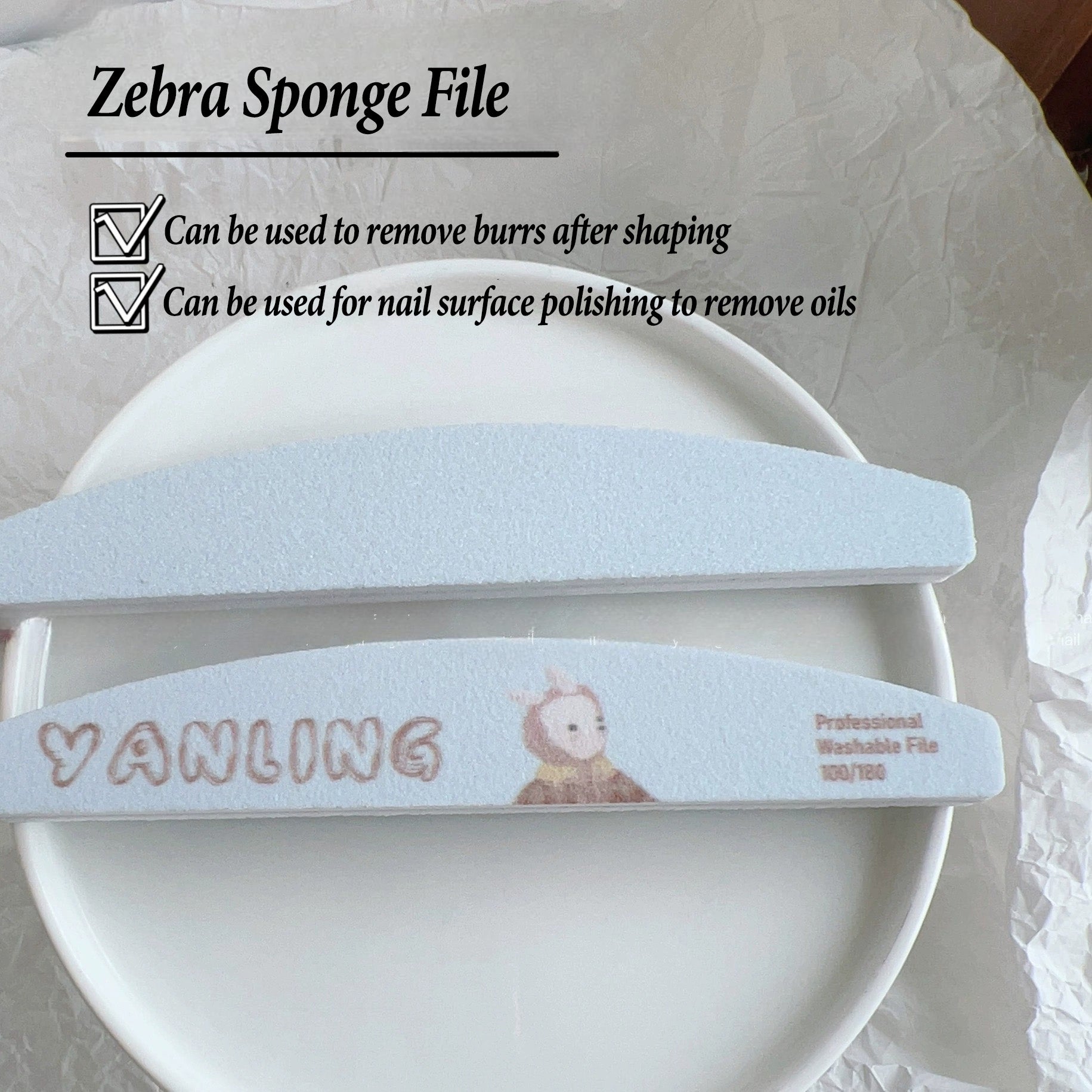 Adhiera archivo exclusivo de esponja de uñas | Archivo Zebra de doble cara | Strip de pulido y pulido de uñas