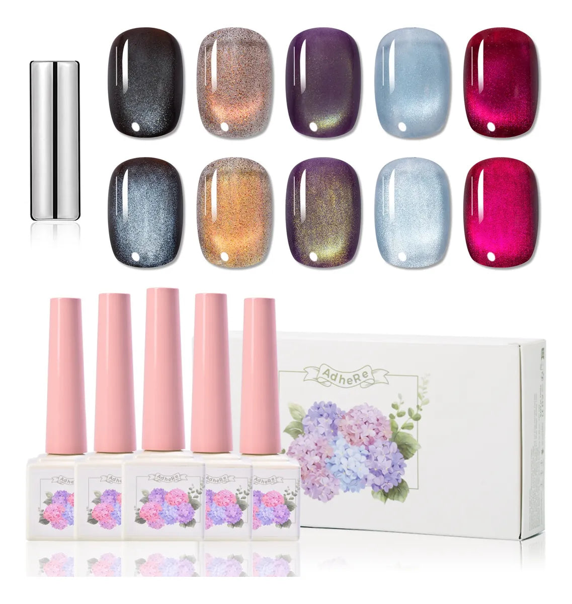 ADHERE Trend Vane Series Cat Eye Gel Nail Polish Set – 5 Colors Inspired by Dragon Fruit, Kyoho Grape, Sunset Sky – Magnetic Gel Polish for Salon & DIY Manicure, 12ml Each